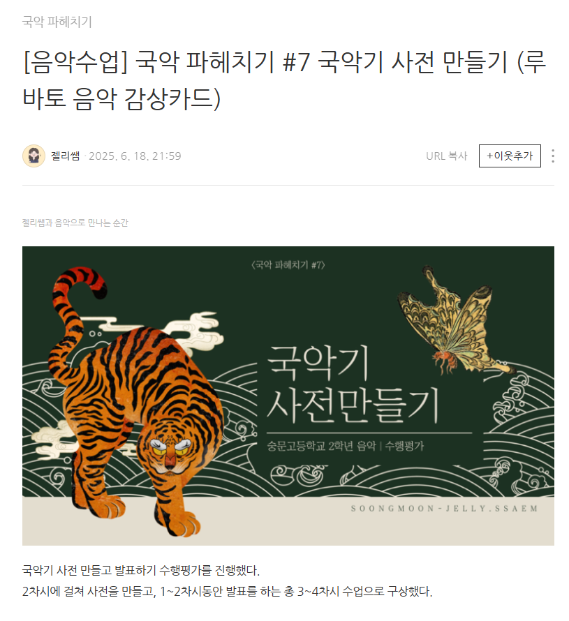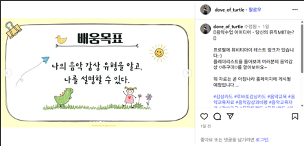 다양한 학습 자료 생성과 블로그, 인스타그램 등의 SNS 상 활동과 더불어 지난 8월에 진행된 '뮤직T랜드 SEMINAR'에서 수업 사례를 토대로 한 강의도 진행하시는 등 다양한 활동을 보여주셨습니다.