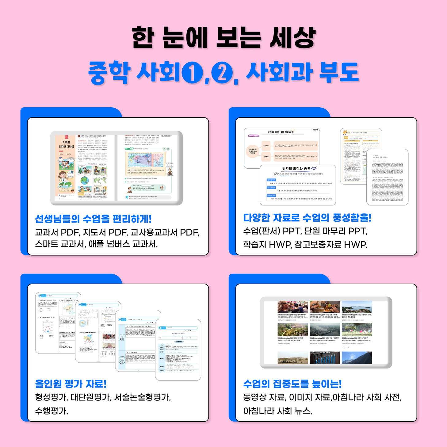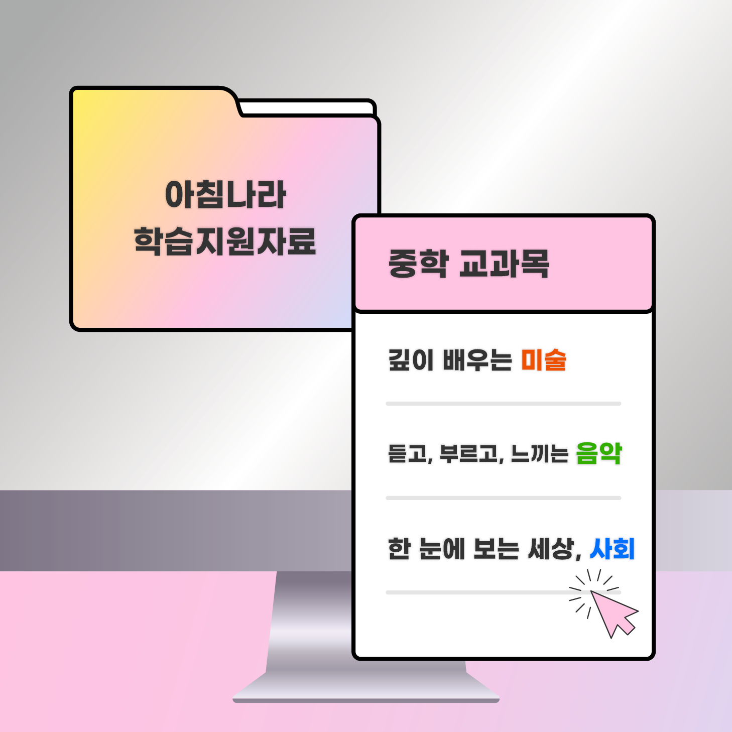 ▶ 중학 교과목(미술①∙②, 음악①∙②, 사회①∙②, 사회과 부도) 학습 지원 자료를 소개합니다!