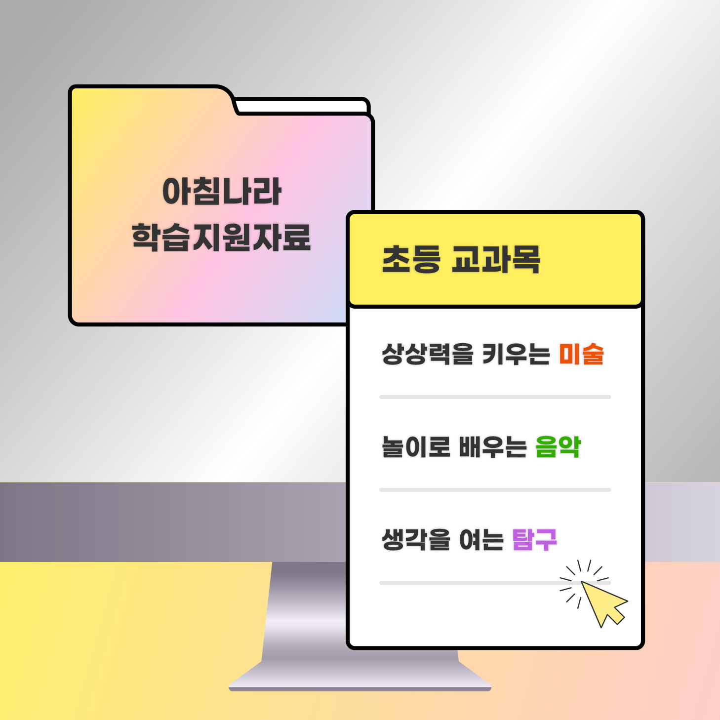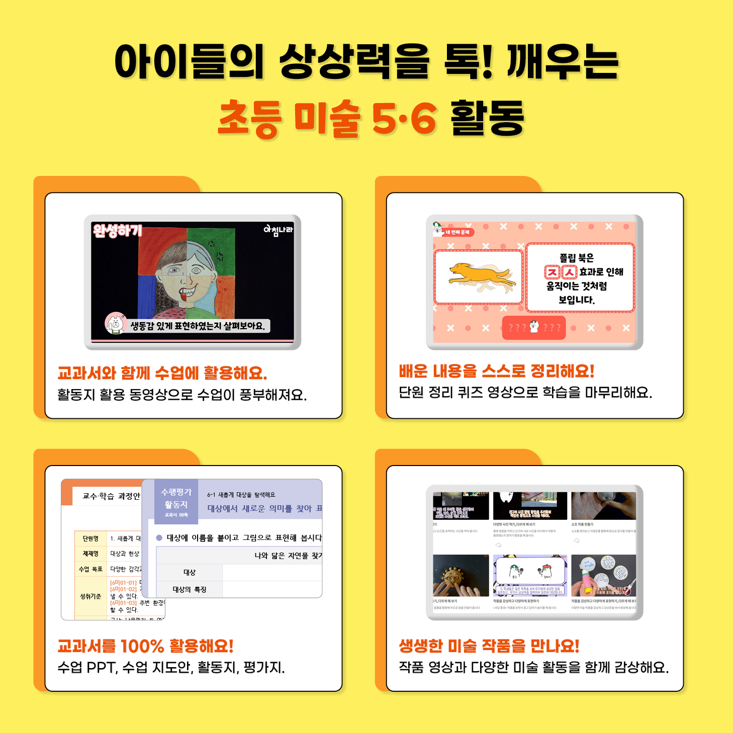 ▶ 초등 교과목(미술5∙6,음악3~6,생각이보이는탐구3~6) 학습 지원 자료를 소개합니다!