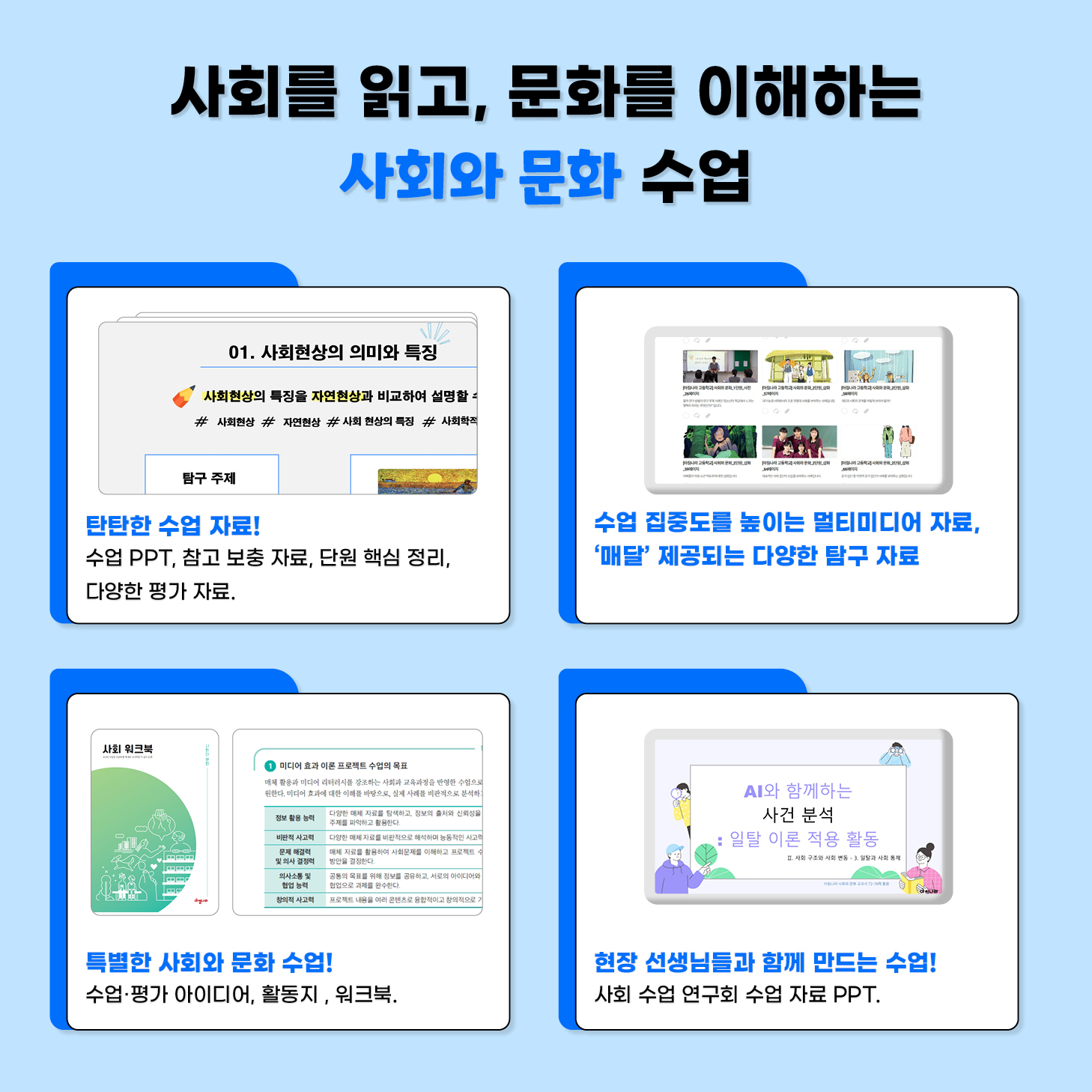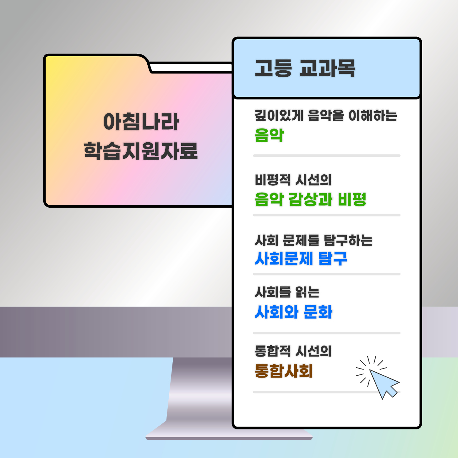 ▶ 고등 교과목(음악, 음악 감상과 비평, 사회문제 탐구, 사회와 문화, 통합사회1,2) 학습 지원 자료를 소개합니다!