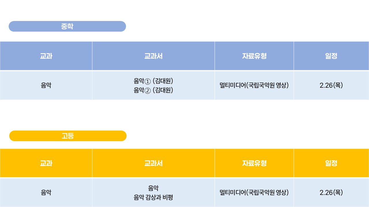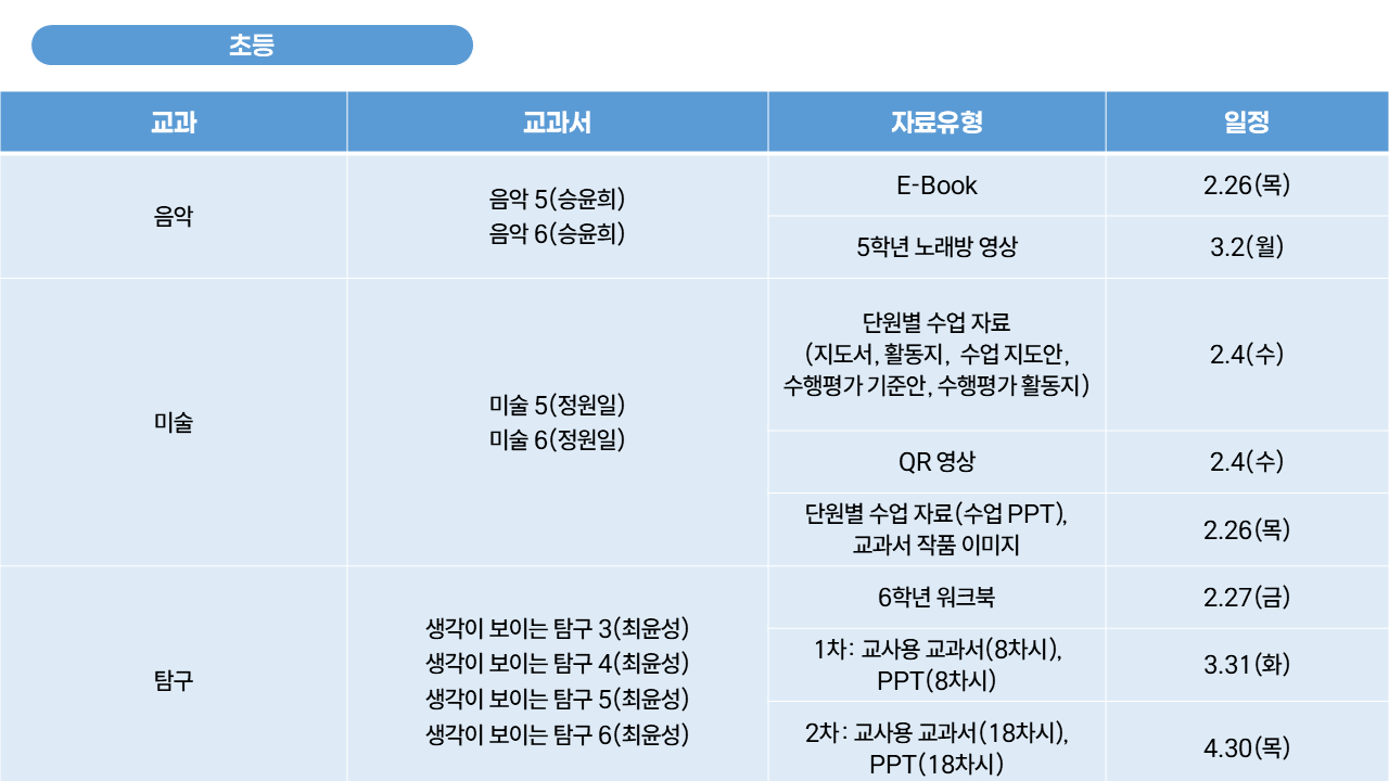 아래 표에 제외된 과목의 자료는 이미 교과서 자료 메뉴에 오픈되어 있으니, 참고 부탁드립니다!